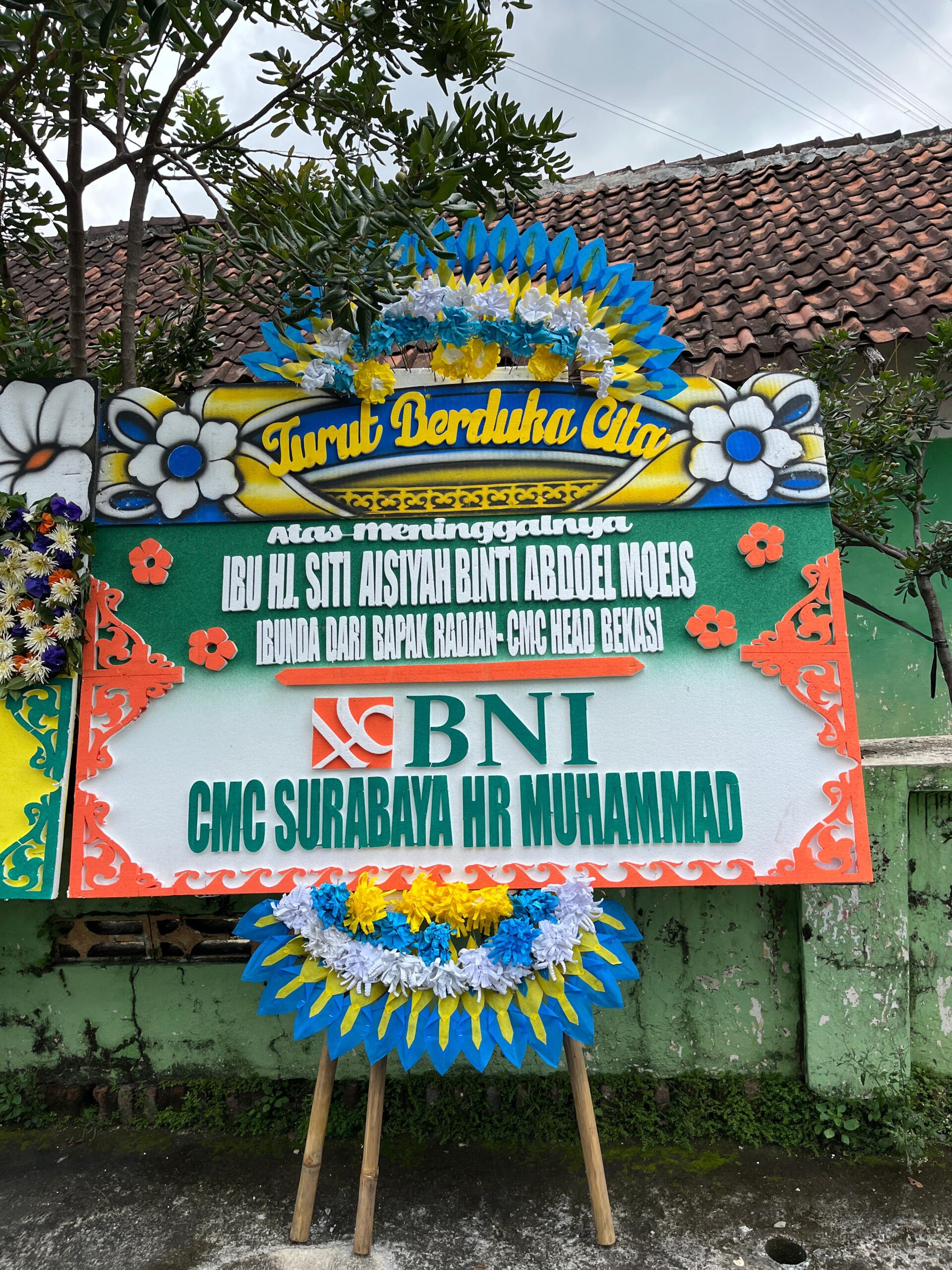 Bahan : Styrofoam Pengerjaan : Handmade Frame : Bambu Tipe Bunga : 2 Sisi atas bawah Warna : hijau, oranye warna mahkota : biru & kuning